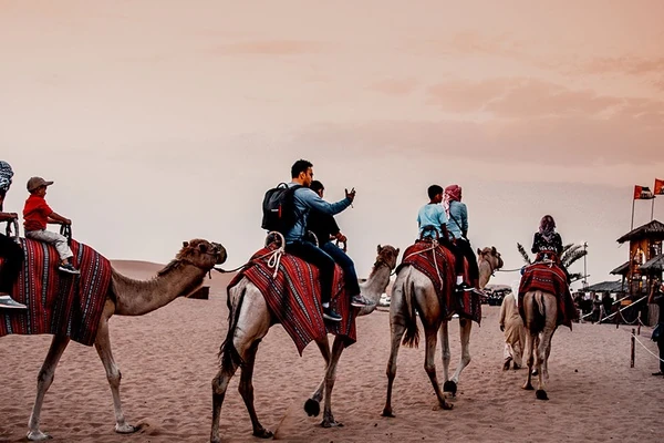 Beat the heat and the crowds with a crisp morning run through Lahbab sands. A pre-dawn climb brings pastel skies, then it’s dune bashing, sandboarding, and a short camel ride while the air is cool. A light breakfast resets you for the day—back at the hotel by late morning. Upgrade for longer dune time, add a private 4×4, or let one adult try the quad while kids ride free as passengers in the kids-zone.